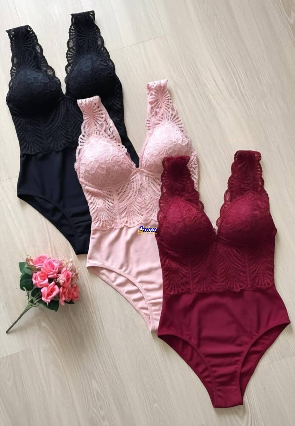 1 - O envio de Body Feminino Com Renda modelos, cores, aplicações e marcas das roupas por atacado são feitas de formas sortidas e de acordo com a disponibilidade em estoque, porém tamanhos irão conforme o que estiver na descrição do produto.