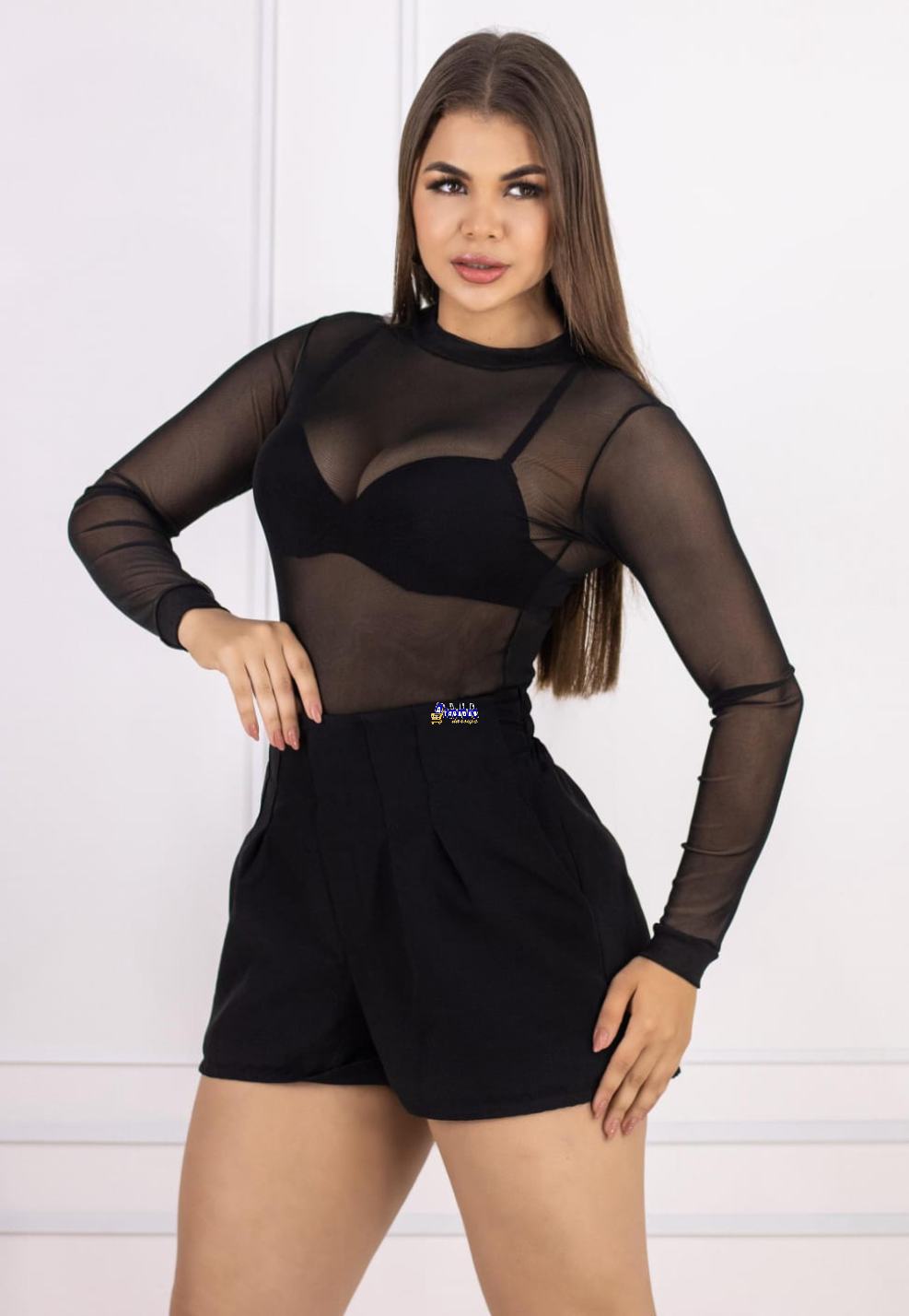 MODELO: Body manga longa em tule, ideal para usar com tops, croppeds ou lingerie, compondo looks modernos para balada, festas, eventos e até produções casuais com estilo.