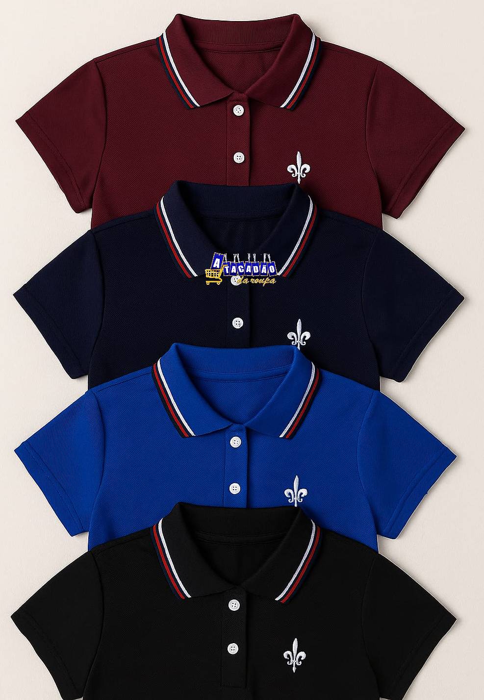 2 - O Estoque é sempre atualizado e acompanha as tendências da moda, as mercadoria irão o mais próximo dos modelos das imagens, podendo mudar alguns detalhes. Somos fabricas de roupas por isto conseguimos vender roupas no atacado com melhor preço do mercado. Camisa Gola Polo Infantil Algodão Atacado