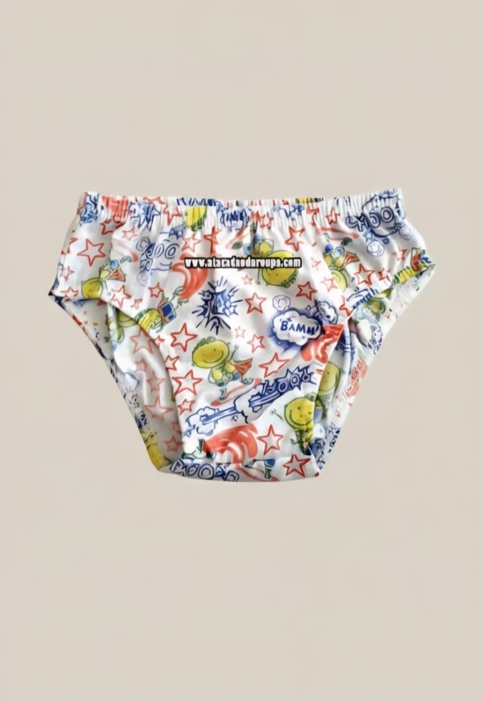 1 - O envio de Cueca Infantil Estampada Malha Fria modelos, cores, aplicações e marcas das roupas por atacado são feitas de formas sortidas e de acordo com a disponibilidade em estoque, porém tamanhos irão conforme o que estiver na descrição do produto.