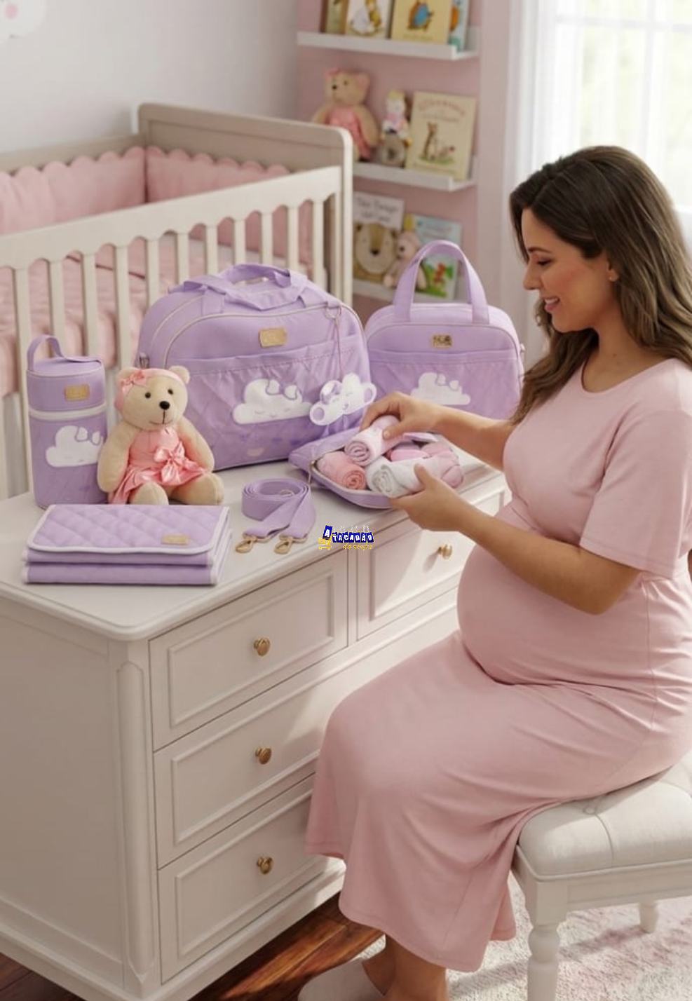 1 - O envio de Kit Bolsa Maternidade 4 Pecas Feminina modelos, cores, aplicações e marcas das roupas por atacado são feitas de formas sortidas e de acordo com a disponibilidade em estoque, porém tamanhos irão conforme o que estiver na descrição do produto.